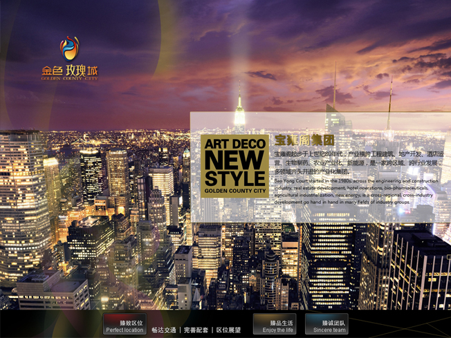 . 2013年,受宝雍阁的委托,万像帮助“金色玫瑰城”倾力打造3D全新动态售楼销讲系统,制作出全三维高清数字影片,为观众带去更直观、更震撼的全3D购房体验!